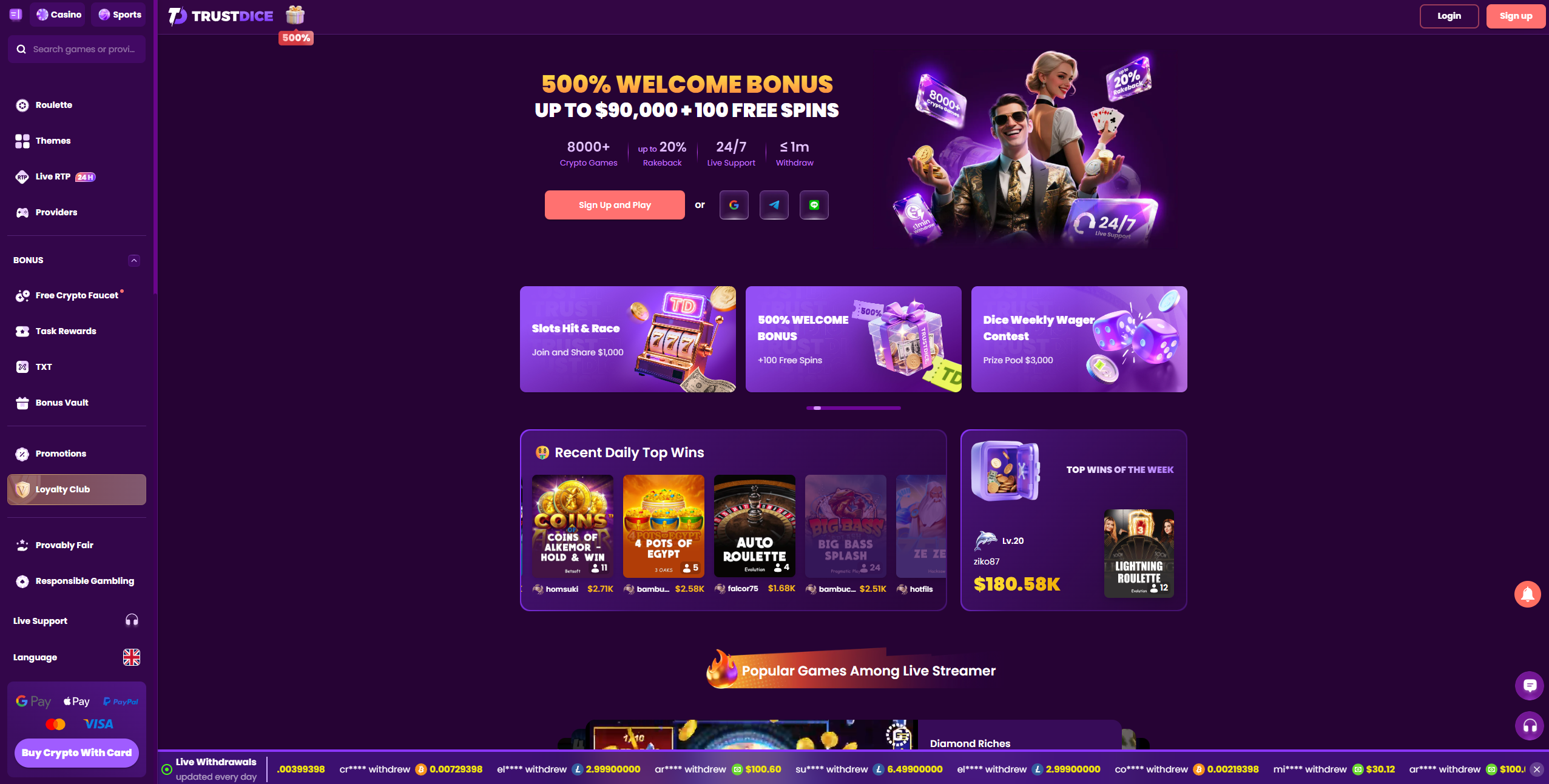 Trustdice выстраивает игровой процесс вокруг криптовалют и прозрачных правил, что особенно важно для игроков, которые не хотят зависеть от банков, длительных проверок и ручной модерации. Онлайн казино подходит тем, кто ценит быстрый доступ к средствам, честную механику и понятные условия без скрытых ограничений.